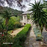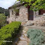 Emerald House Zárakes villa ligt op 3-km afstand van Zarakon Beach en nodigt gasten uit om te ontspannen op een terras.